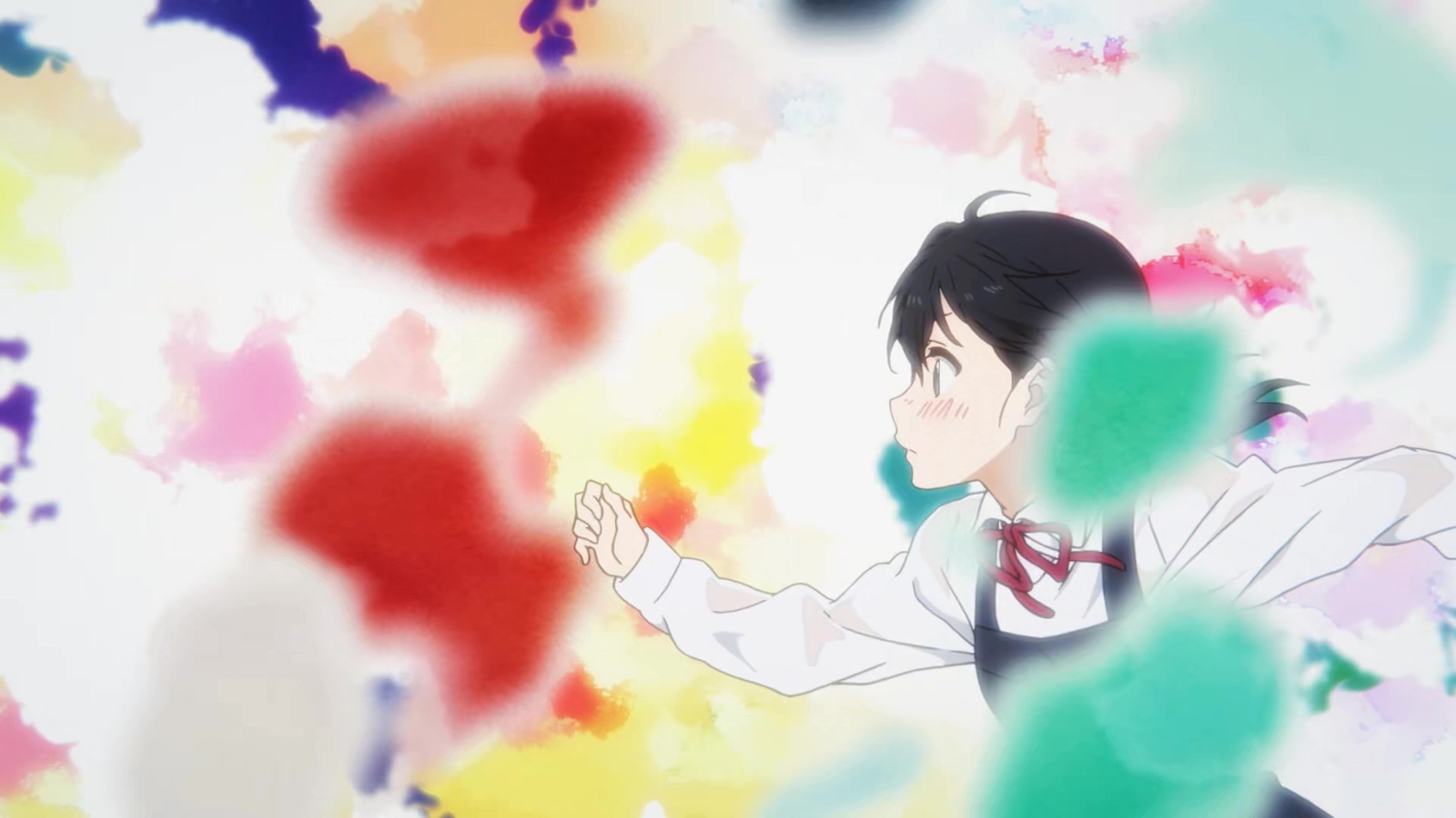该怎么说好呢,大概是少女情怀总是诗吧。接下来玉子飞奔回兔子山商业街的一段,此刻玉子的内心正如同荧幕上五彩斑斓的背景一般,面对人生的初次被告白,心动不已却又不知所措。